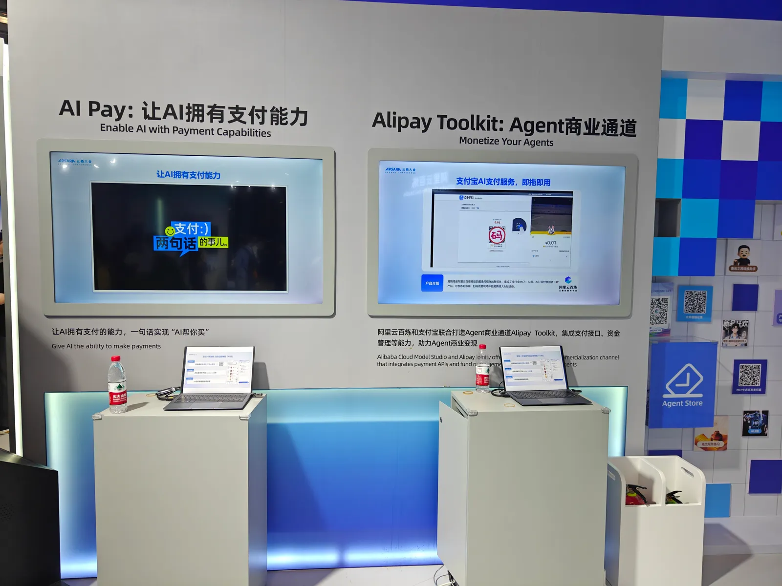 在阿里云百炼展台发现了新的支付方式,通过智能眼镜对准碰一碰机器,说出“支付10元”,“确认支付”即可完成一笔交易。暂时还不清楚是通过Ai眼镜还是通过声纹完成的用户配对,但确实又整出了一种新的支付方式👀。