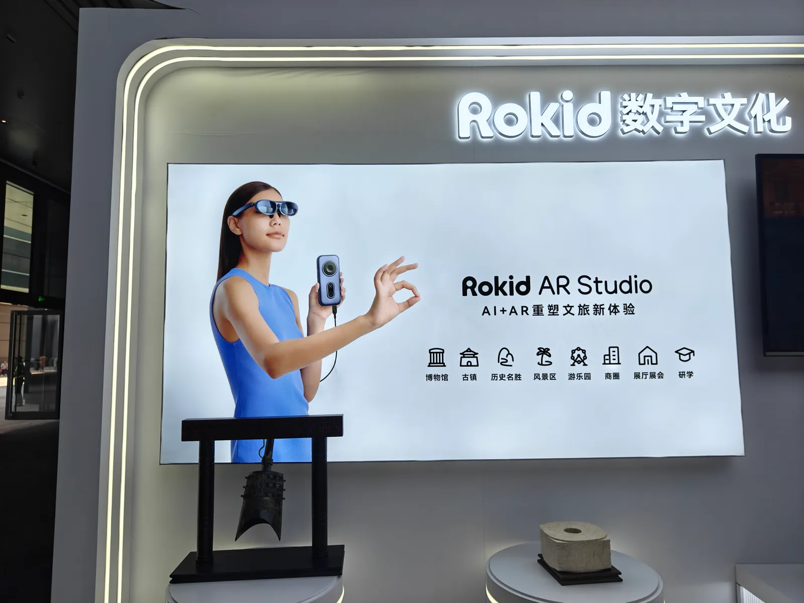 去年在WAIC体验过,那时候只能看预置的视频,今年结合AI做了很多文创系列的功能,目前算是在智能眼镜这块做得最出名的一家。