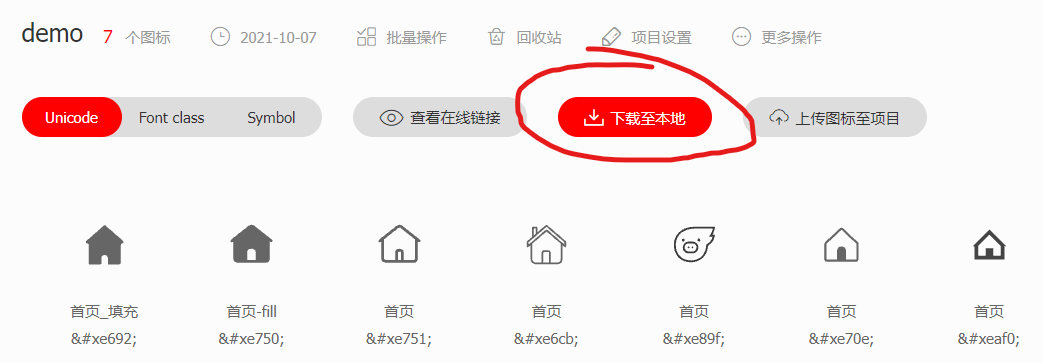 当所有的图标都处理完成后,点击下载至本地按钮下载图标项目。