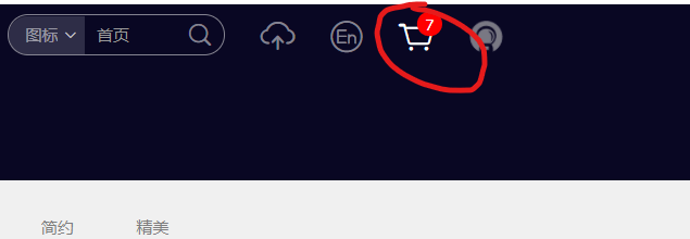 3、添加完想要的图标后,点击页面右上角的购物车图标会在页面右侧弹出一个浮层列出了所有被选中的图标