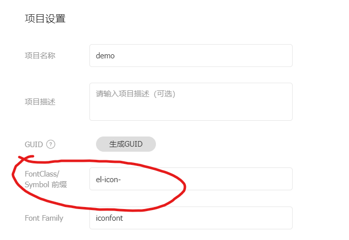 7、这里只需要修改FontClass/Symbol 前缀这一项,把icon-改为el-icon-。