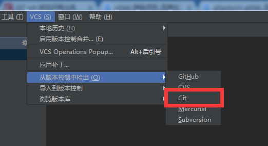 然后点击 git,输入 git仓库的地址、本地安装路径(不包括项目名)、项目名 设置,然后PHPStorm会自动引用。
