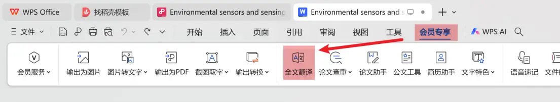 - 之后再使用WPS Word的全文翻译功能(这一步每月有转换上限)