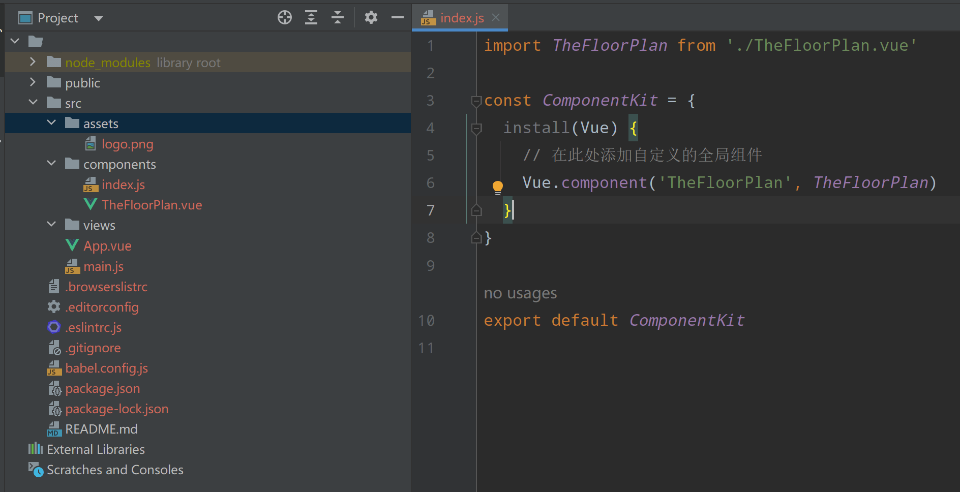 三、编写package 此处以TheFloorPlan.vue组件为例(劳工项目的平面图组件),从头编写一个Package Demo。