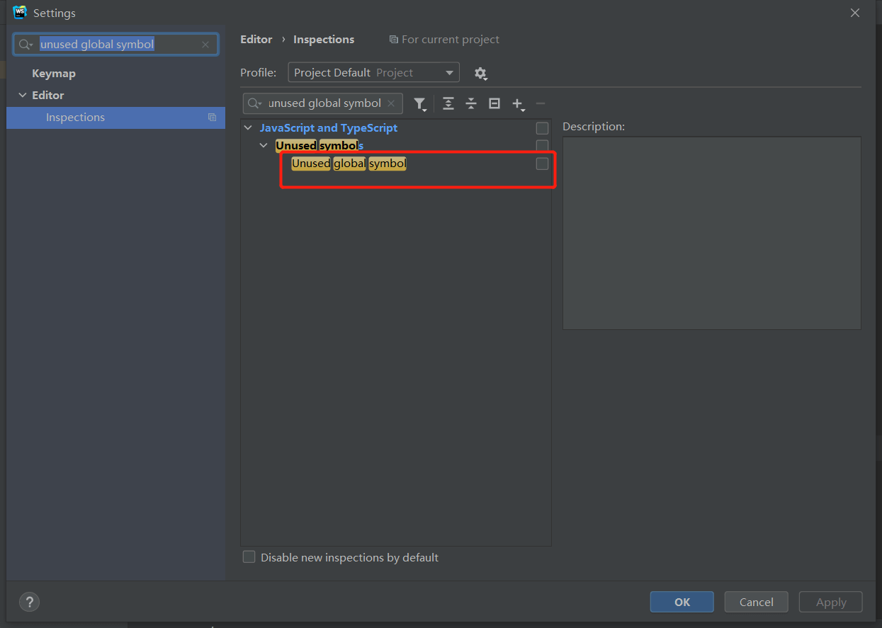 unused method xxxx File -> Settings -> 搜索unused global symbol, 把√去掉即可: