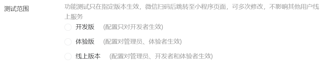 - 体验版:通过扫码会打开被设置为体验版的小程序版本